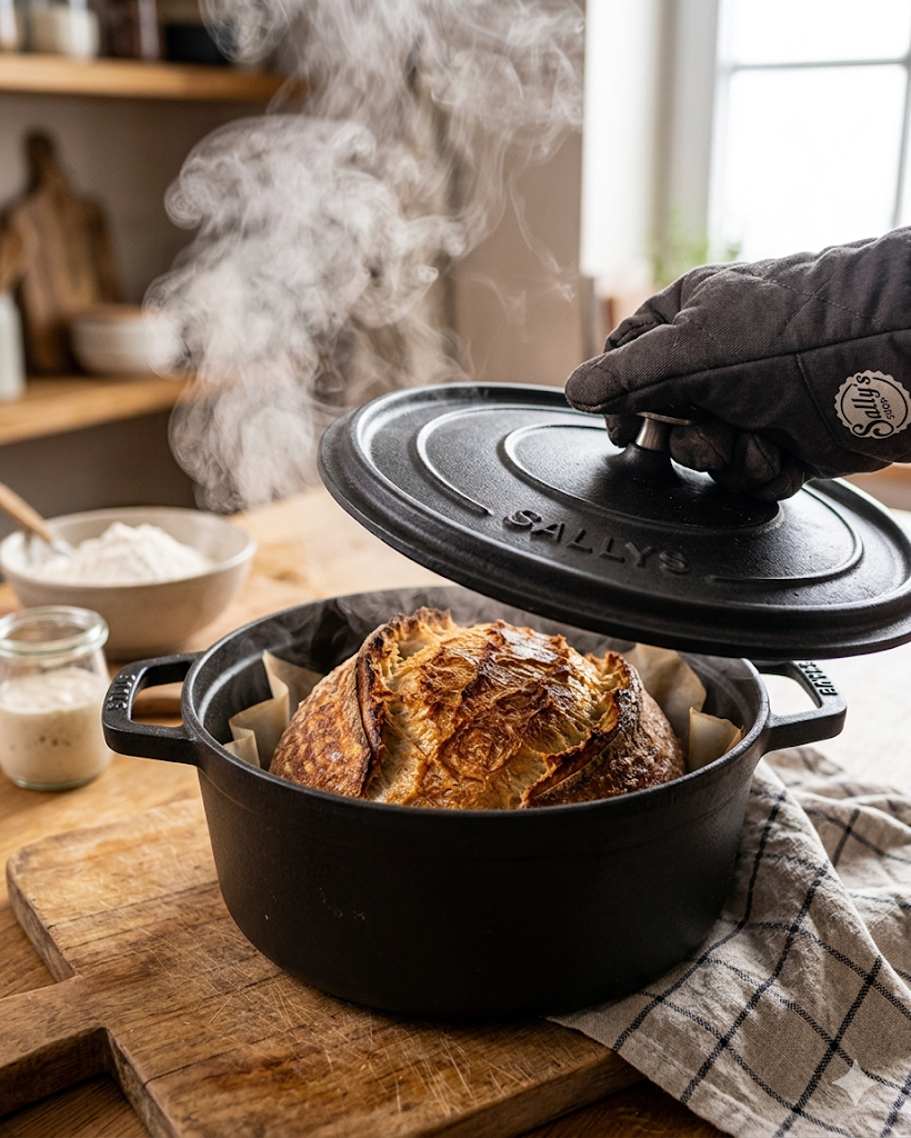 Wer einmal Brot in einem gusseisernen Topf (Dutch Oven) gebacken hat, kehrt nie wieder zum normalen Backblech zurück. Das Gusseisen-Sortiment von Sally gehört zu den Bestsellern.